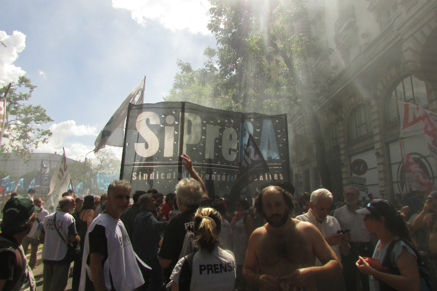 El hecho de tener que estar al frente e intentar hacerse mano de la objetividad que se supone debemos tener (aun cuando los millonarios medios inclinen la balanza hacía donde están puestos los billetes), se torna difícil como también preservar la propia integridad. En jornadas como las que vivimos donde se debe auxiliar a algún herido, levantar a una persona descompuesta por los gases, protegerse de las balas de la policía, compartir medio limón con quien no lo tenga, y correr para evitar la cacería, cuesta mantener la objetividad. Porque esas personas que se manifiestan en las plazas (aquellas tildadas de violentas por defenderse a piedrazos de la violencia que las instituciones imponen día a día) son pares, son compañeras, son hermanas y corre por sus venas y sus bocas la misma lucha. Porque tal y como titula el comunicado de ARGRA “No hay garantías para el ejercicio de la prensa”; y esa es otra lucha que debemos enarbolar como bandera; y por sobre todas las cosas, como aquello que somos: trabajadorxs de la prensa.