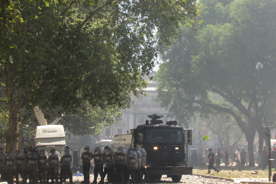 Cuesta mantener la objetividad suficiente para simplemente registrar, cuando los objetivos de las balas también somos nosotrxs. Cuesta mantener la objetividad cuando en el medio de la batalla campal se reciben perdigonazos de la policía (y no las piedras de los manifestantes) en el intento de sacar una fotografía. Cuesta mantener la objetividad cuando esa turba enardecida lo está por el mismo motivo que uno: cuando aquellos que siempre tuvimos trabajos precarios y en negro perdemos el derecho a acceder a una jubilación. Cuesta mantener la objetividad cuando la democracia liberal, asentada sobre la sangre del pueblo trabajador, demuestra su condición de falacia, su ineficacia. Cuesta, porque el poder del Estado burgués se sostiene con el “monopolio de la violencia”. Cuesta tanto como aceptar el hecho de que somos una masa animal cargada de emociones a punto de estallar; aun cuando verlo puede que forme parte de esa objetividad con la que se supone unx debe registrar la historia.