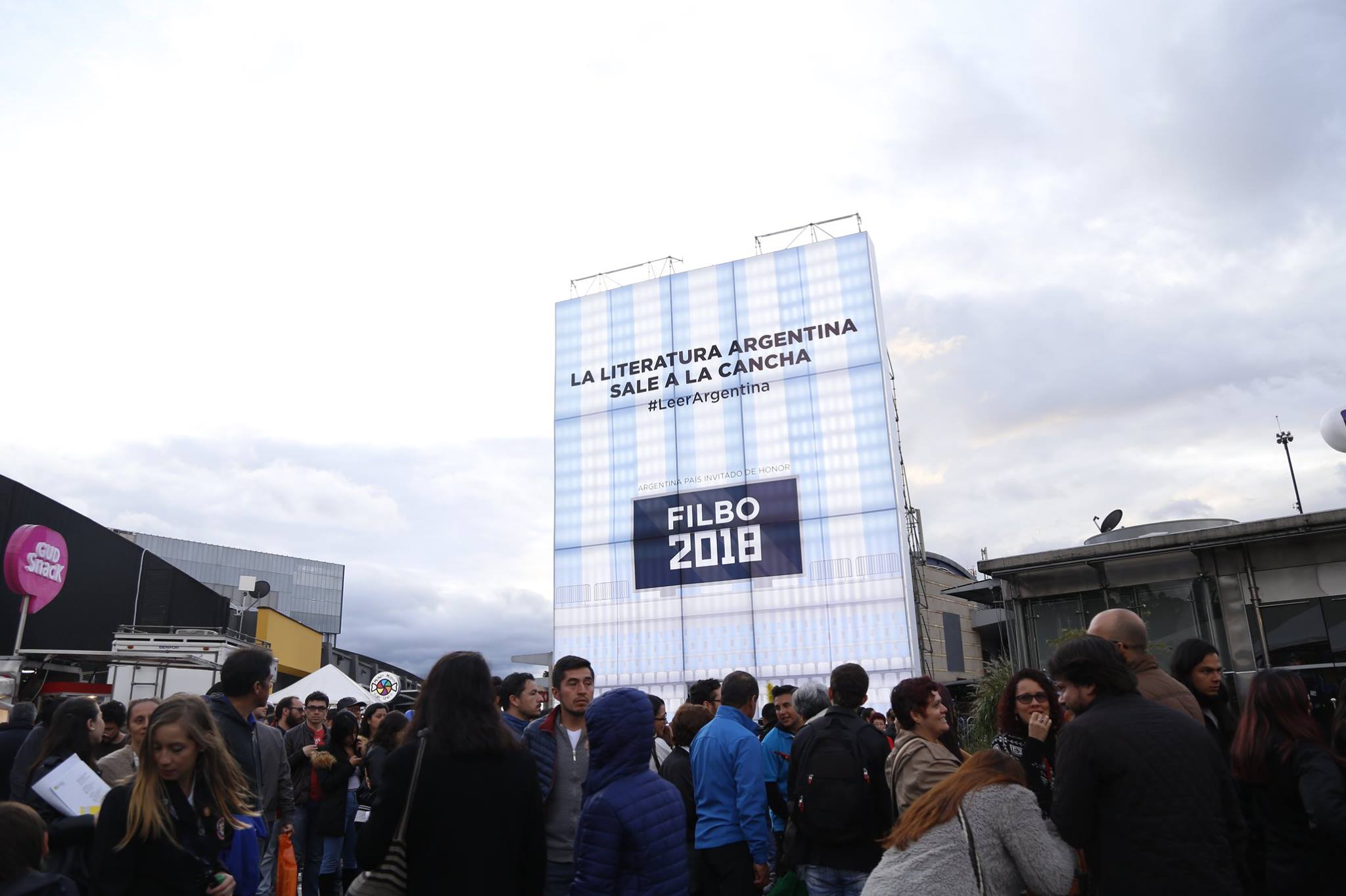 El carácter de la participación nacional en la Feria del Libro de Bogotá y la ornamentación de su pabellón fueron motivo de discordia. Como dijo el escritor argentino Mempo Giardinelli, el meollo de la crítica es haber montado en Bogotá “una muestra futbolera antes que literaria”. En este sentido, su colega colombiana Carolina Sanín manifestó que “[l]a gran verruga de la Feria fue el pabellón de Argentina con esa preminencia que da al futbol.  Argentina vino y nos puso una cancha de fútbol en todo el corazón de su pabellón, en todo el corazón de la Feria del Libro, y no veo cómo eso no es irrespetuoso con los autores que vinieron”. Por su parte, Alberto Manguel, director de la biblioteca nacional, pidió “disculpas en nombre de todos los argentinos por el vergonzoso escenario de un estadio de fútbol montado en una fiesta del libro”.