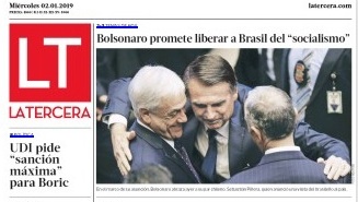 “Me presento ante la nación este día en que el pueblo empezó a liberarse del socialismo”, afirmó Jair Bolsonaro cuando promediaba su primer discurso como presidente, ante sus seguidores reunidos en Brasilia. “¡Nuestra bandera jamás será roja!”, vociferó al tomar posesión como 38° mandatario de la República federal de Brasil, en una ciudad militarizada. Para agregar: “Sólo será roja si precisamos derramar nuestra sangre para mantenerla verde y amarilla”. Redundante en su retórica de campaña, el ex capitán, volvió a mostrar la orfandad de ideas y propuestas ante los gravísimos problemas que atraviesan al gigante suramericano.