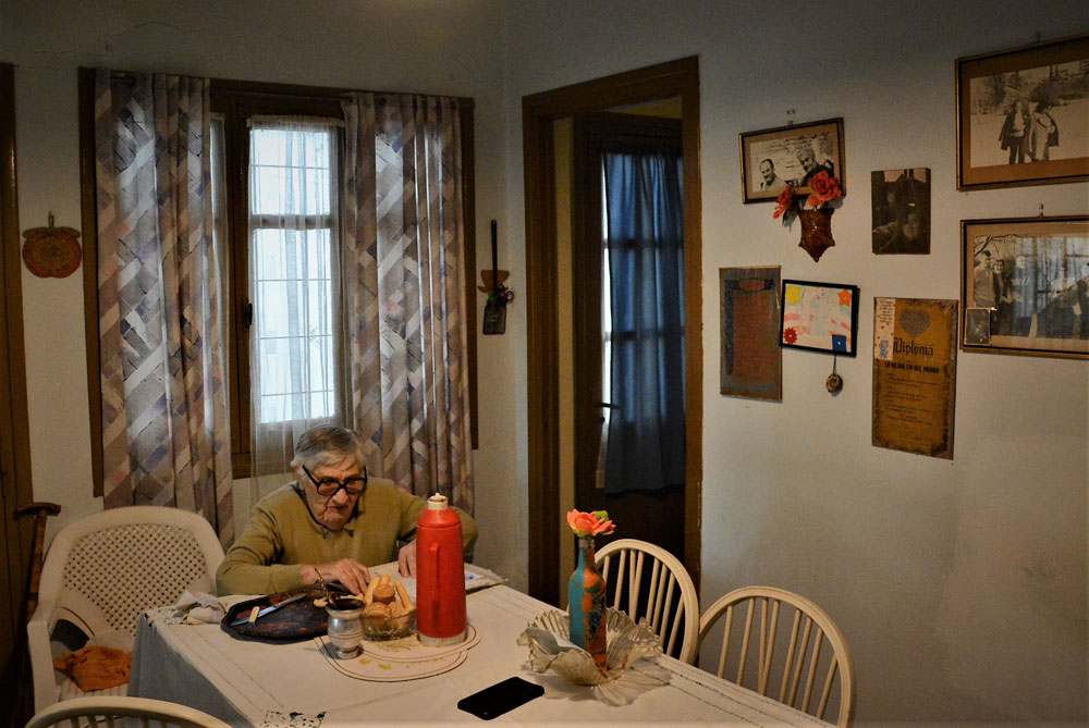 De las habitaciones de la casa, el pequeño comedor pegado a la cocina es su preferida. Allí lee, escucha la radio o mira televisión, rodeada de fotografías de sus familiares, casi todas en blanco y negro. Grisines y bizcochitos de por medio, la charla empieza con una confesión: «Estoy cansada», dice; y lo afirma sin perder la sonrisa.