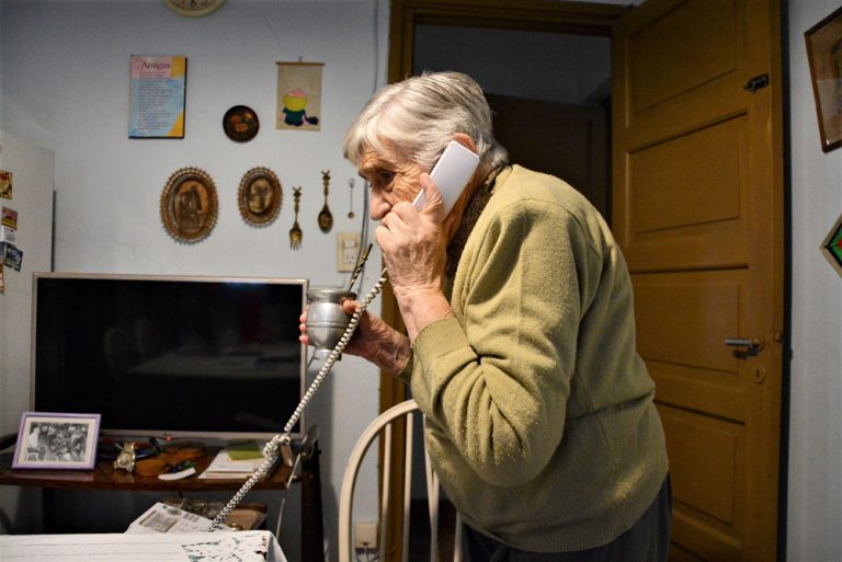 – Cada vez hago menos cosas, más monótona no puede ser. Me gusta levantarme tarde, por eso me prefiero el invierno (ríe). En casa ya puedo hacer muy poco. Me pido vianda, tomo mate. Me acuesto a la siesta. Al patio voy menos porque el piso está muy desnivelado. Me caí no hace mucho y me vino miedo. Leer leo poco, algunas novelas que me pasa una vecina. Antes hacía más palabras cruzadas. Miro televisión, pero la radio es mi compañía. Escucho emisoras de acá, LT14 o las FM. Y si es un día lindo me voy con las dos sillas de plástico y me siento afuera, adelante. Hago sociales con la gente que pasa. Viene a veces alguna vecina o la señora de mi sobrino.