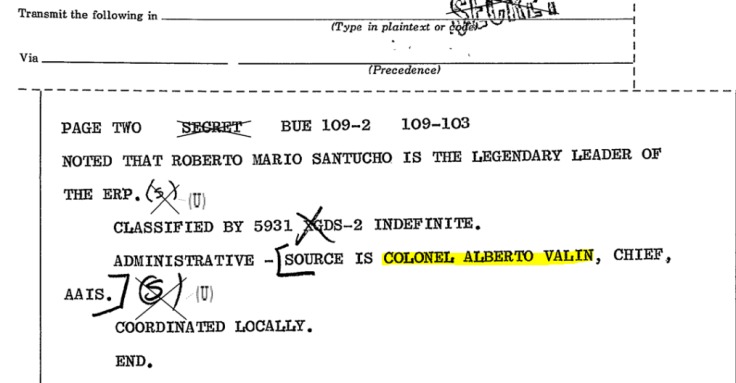 - “Como una señal de los éxitos de las fuerzas de seguridad sobre el ERP, la SIDE recientemente detuvo a dos hermanos de Mario Roberto Santucho, y estuvo muy cerca de detener a Santucho mismo”.