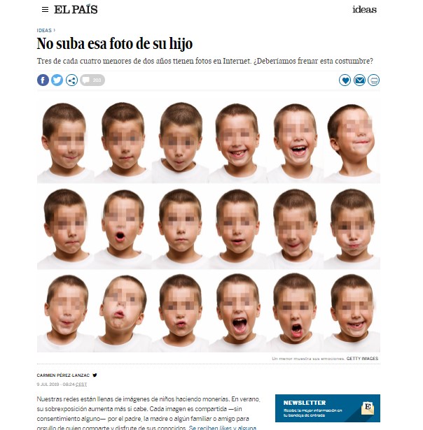 Tres de cada cuatro menores de dos años tiene fotos online. Lo contó la periodista Carmen Pérez-Lanzac en el diario español El País a partir de un estudio que dio a conocer la empresa de seguridad en Internet AVG. Pérez-Lanzac cita a su vez a la abogada Stacey Steinberg, quien publicó en 2016 el informe “Sharenting, la privacidad de los niños en la era de las redes sociales”: “Los padres son los veladores de la información personal de sus hijos y los narradores de la vida de estos”. Si las emociones que desatan la maternidad y la paternidad asoman como las razones principales para explicar esto que sucede, la legitimidad de las acciones parentales se sostiene básicamente en un supuesto poco debatido y casi nada argumentado: el amor de los progenitores es la mejor garantía para cuidar el futuro de les niñes.