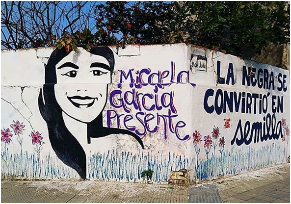 Mural en homenaje a Micaela García, pintado por sus compañeras en la esquina de Rosario y 9 de Julio. Concepción del Uruguay, Entre Ríos