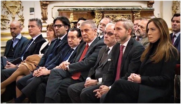 Salvo las sonrisas de una tía que nunca falta en la asunción de cualquier funcionario, el acto en el Salón Blanco de la Rosada estuvo lleno de seriedades de velorio, y hasta de ropas al tono.