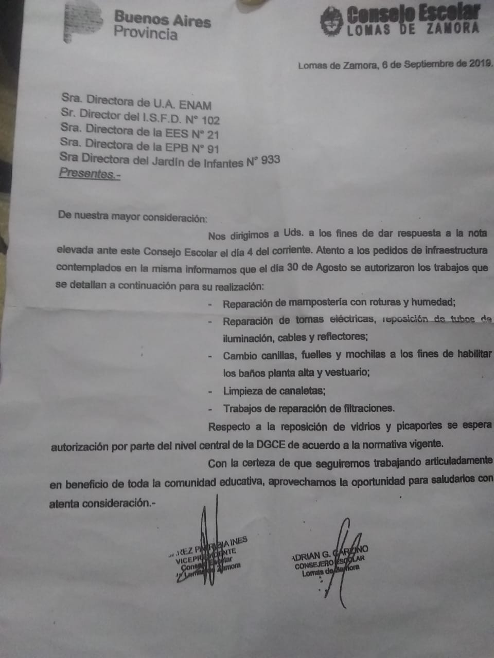 E.F: – Ya tuvieron un primer éxito, al menos en lo que se refiere a las obras menores, que dependen del Consejo Escolar…