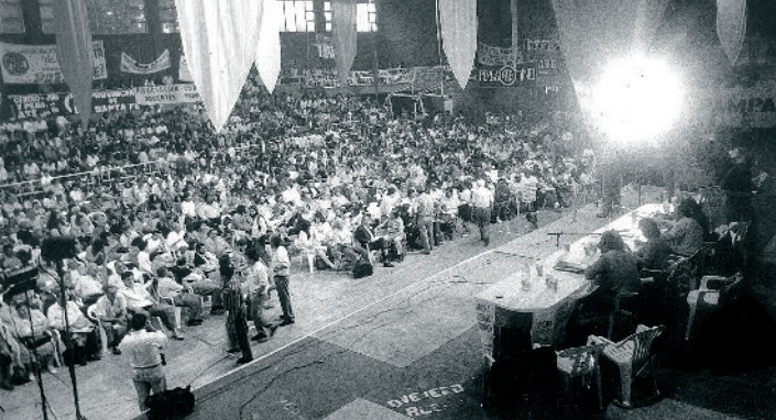 Dos encuentros de trabajadores y dirigentes sindicales previos, en Burzaco y Rosario, habían afirmado esa perspectiva en sendos documentos. El CTA nacía como punto de convergencia de corrientes históricas diferenciadas del movimiento obrero y se proponía alcanzar una síntesis superadora. Un vibrante primer congreso en el que unos cinco mil delegados de todo el país debatieron posiciones en un clima inédito de democracia, fraternidad y alegría,quedó sintetizado por uno de sus referentes: “Nosotros somos herederos de toda esa historia, de más de un siglo de luchas, y al asumir el papel de permitir la recomposición de la lucha de la clase trabajadora en una nueva etapa, estamos alentando la reconstrucción de un movimiento nacional que haga política con mayúscula; y en esto quiero ser claro: hoy no se puede construir un sindicato si no se hace, esencialmente, política”.