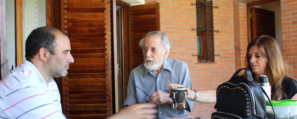 Allí, sobre Bepo, dice: “Había ido reuniendo testimonios orales, y, en ese tren, un sábado de marzo, fui a entrevistar a Filiberto Satti, que vivía en una hermosa casilla de madera, en Villa Laza. Y aunque Berto (como le llaman familiarmente) nunca partió piedra, su padre, sus hermanos y sus amigos, lo hicieron. Pero, testigo de ese mundo, sería un informante valioso. Él fue, en esa visita, quien me habló de Bepo Ghezzi y me acompañó hasta su casa. Las primeras entrevistas fueron enriquecedoras para mi acopio canteril. Pero en sus exposiciones se escapaban alusiones a su vida de croto o linyera”. Bepo había decidido regresar a Tandil después de su última croteada. Buscando un libro, Hugo Nario se encontró con otro. También con un amigo.