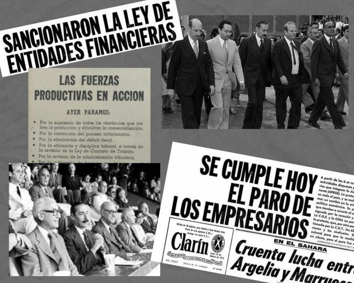 Y EL 24 DE MARZO DE 1976 SE CONCRETÓ EL GOLPE CÍVICO MILITAR. El informe que reproduce IDEA también señala que el papel de las “grandes empresas” en la dictadura tiene varios hitos, a partir de “su participación en los preparativos golpistas que incluyeron lock-outs (paros patronales) y solicitadas reclamando que las fuerzas armadas tomen el poder”, “el aporte de muchos de sus gerentes a los equipos de gobierno de Videla y compañía: ministros, secretarios de Estado y todo tipo de funcionarios” y “su participación en la represión, entregando listas de delegados y activistas, llegando a montar centros de tortura en sus instalaciones”. Como cuarto componente incluye “las leyes y negociados que permitieron a muchos grupos aumentar sus ganancias y la cantidad de empresas al final de la dictadura”, además de “un beneficio no menor: la estatización de sus deudas privadas por parte del Banco Central en 1982, miles de millones de dólares que todavía seguimos pagando”.