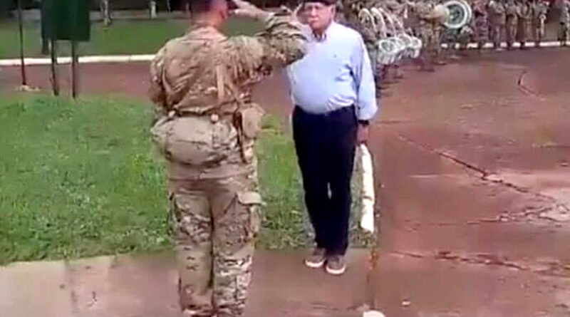 El genocida bonaerense Horacio Losito (73) visitó en la mañana de este jueves 29 de febrero, la sede del Regimiento de Infantería Monte 30, ubicado en la ciudad de Apóstoles, en el sur de la provincia de Misiones. Al llegar a este destacamento, con el objetivo de visitar a su hijo, Losito fue recibido con una ceremonia de honor por parte del jefe del Regimiento, Teniente coronel Rodolfo Narváez, y varios subalternos.
