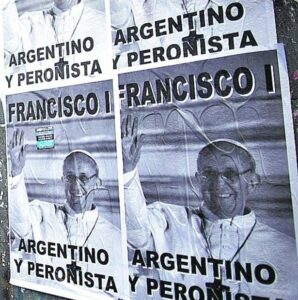 Por primera vez en la historia de la iglesia la designación recayó en un latinoamericano, el cardenal argentino Jorge Bergoglio, de reconocida militancia en la organización peronista de ultraderecha Guardia de Hierro. Los afiches “Francisco, argentino y peronista”, empapelaron la ciudad de Buenos Aires y el conurbano.