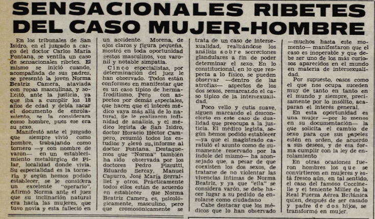 La medicalización de la identidad sexual en la Argentina de los años setenta: El caso Norman Beatriz Cámera